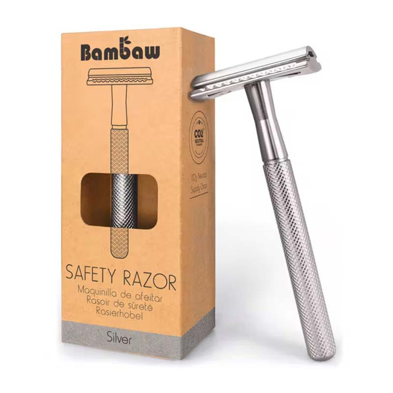 Adoptez le rasoir de sûreté Bambaw en métal au quotidien, pour un rasage agréable et efficace. Sa lame unique permet un rasage plus précis et limite l’apparition de poils incarnés lors de la repousse.