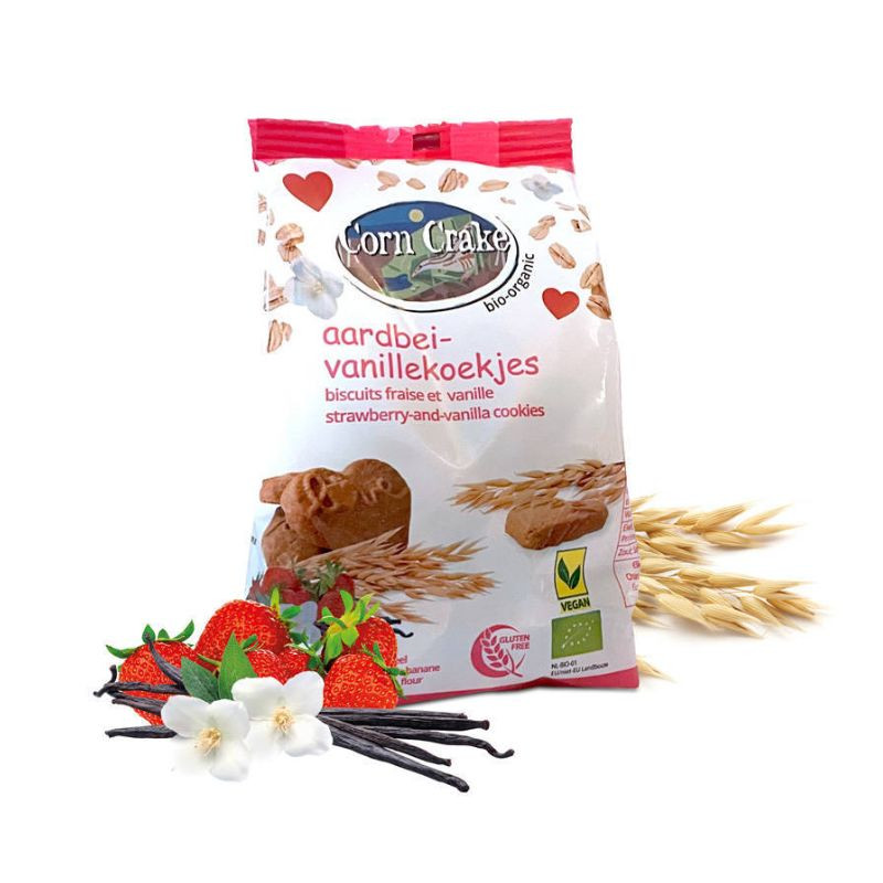 Succombez à ces délicieux biscuits à la fraise et à la vanille bio et sans gluten de Corn Crake. Préparés avec des ingrédients biologiques tels que de l’avoine complète, de la poudre de fraise et de l’extrait de vanille, ils offrent une saveur douce et fruitée dès la première bouchée. Cuits artisanalement dans une boulangerie spécialisée sans gluten, ces biscuits en forme de cœur sont parfaits pour partager un moment gourmand à deux.