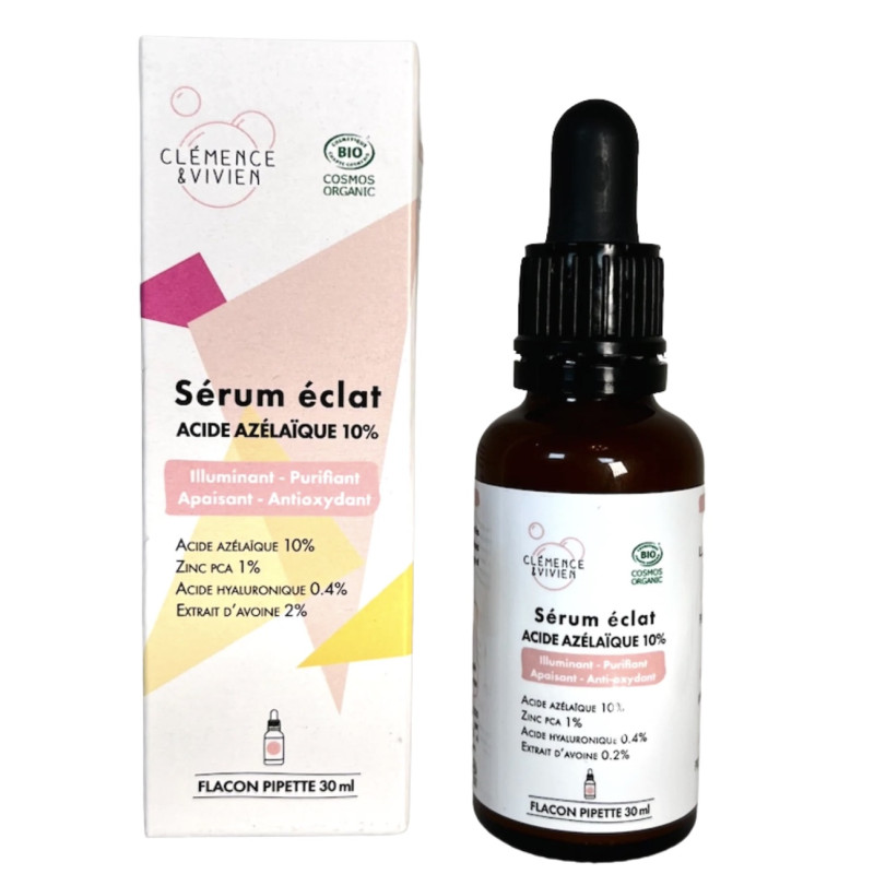 Un teint sublimé avec le sérum éclat Clémence et Vivien ! A l’acide azélaïque 10%, ce soin perfecteur de peau permet de révéler son éclat naturel. Les ingrédients sont d’origine biologique certifiée, vegan et naturels.