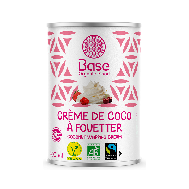 La crème de coco à fouetter Base Organic : le meilleur allié d’un dessert végétal réussi ! Profitez d’une préparation à la texture et au goût parfaits pour monter une crème coco fouettée.