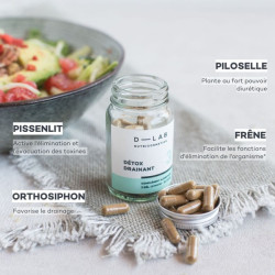 Le Détox Drainant D-Lab est un complément alimentaire, il ne peut pas se substituer à un régime alimentaire varié et équilibré et à un mode de vie sain. Ne pas dépasser la dose journalière recommandée