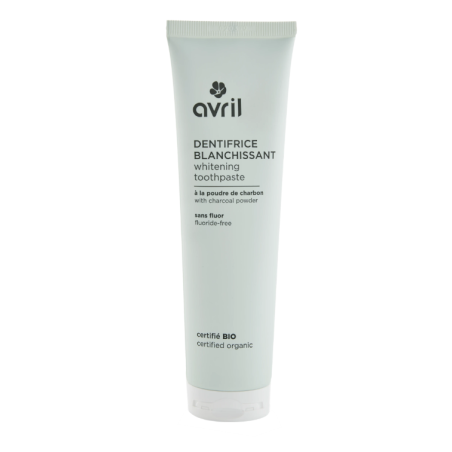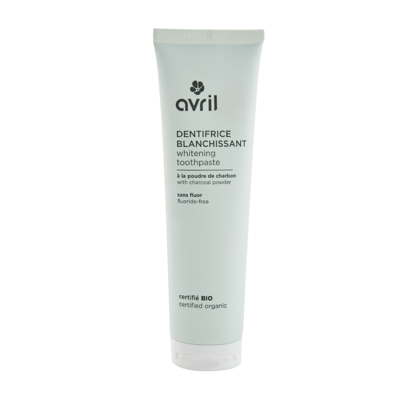 La formule du dentifrice bio blanchissant Avril est notamment enrichie en poudre de charbon, bien connu pour son action naturelle sur la blancheur des dents.