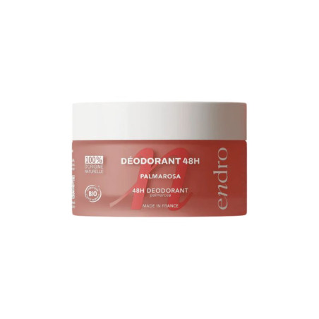 Le déodorant au palmarosa Endro est fabriqué en Bretagne avec seulement 5 actifs. Il est labellisé bio et garanti vegan. Le pot dure en moyenne 3 mois et est réutilisable.