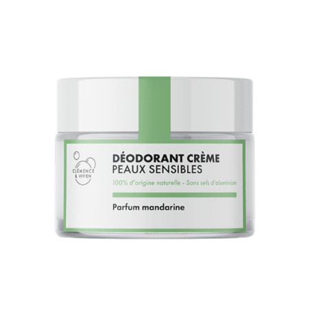 Clémence et Vivien ont imaginé ce déodorant crème au parfum de mandarine pour les peaux les plus sensibles. Un déodorant écologique, à appliquer directement avec les doigts et développé sans huiles essentielles. La formule de ce déodorant à la mandarine est 100% naturelle et composée d'ingrédients bio. Ce produit est certifié Cruelty Free & Vegan.