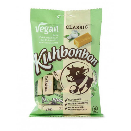Avec les caramels vegan “classic” Kuhbonbon, retombez dans l’enfance ! Délicieusement tendres, ces bonbons caramélisés sont très doux en bouche. L’association du beurre de cacao, du sucre non raffiné et du lait de coco permet de créer un caramel bluffant. Et ce, sans lactose, sans gluten ou aucun allergène majeur.