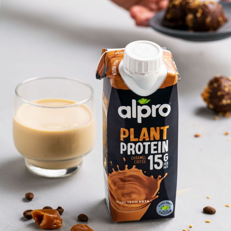 Découvrez la boisson protéinée Alpro, au goût caramel - café. À base de soja, elle contient pas moins de 15g de protéines, parfait pour un coup de boost dans sa journée. D’autant que son format “briquette” est pratique pour l’emmener partout avec soi. La boisson protéinée Alpro, goût caramel - café est certifié vegan, mais aussi sans gluten.