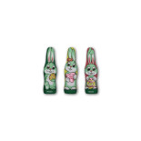 Craquez pour ce grand lapin en chocolat vegan de chez Storz. Présenté dans un emballage aux couleurs éclatantes, il séduit par sa délicieuse alliance de chocolat et de noisette, idéale pour garnir vos paniers de Pâques.