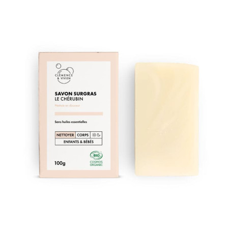 Le Chérubin Clémence et Vivien est un savon pour bébés et enfants. Formulé sans parfum et sans huiles essentielles, il est adapté à la toilette des petits.