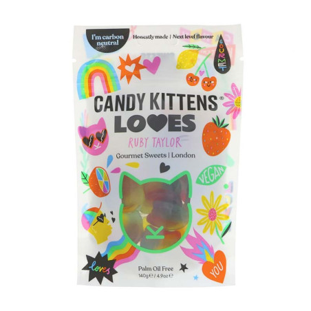 Le paquet est également composé de bonbons “loves”, pour semer de l’amour tout autour de vous. Les bonbons chats Sweet Bag Candy Kittens sont vegan, sans arômes ni colorants artificiels et sans huile de palme. Leur format est idéal à partager entre amis ou en famille.