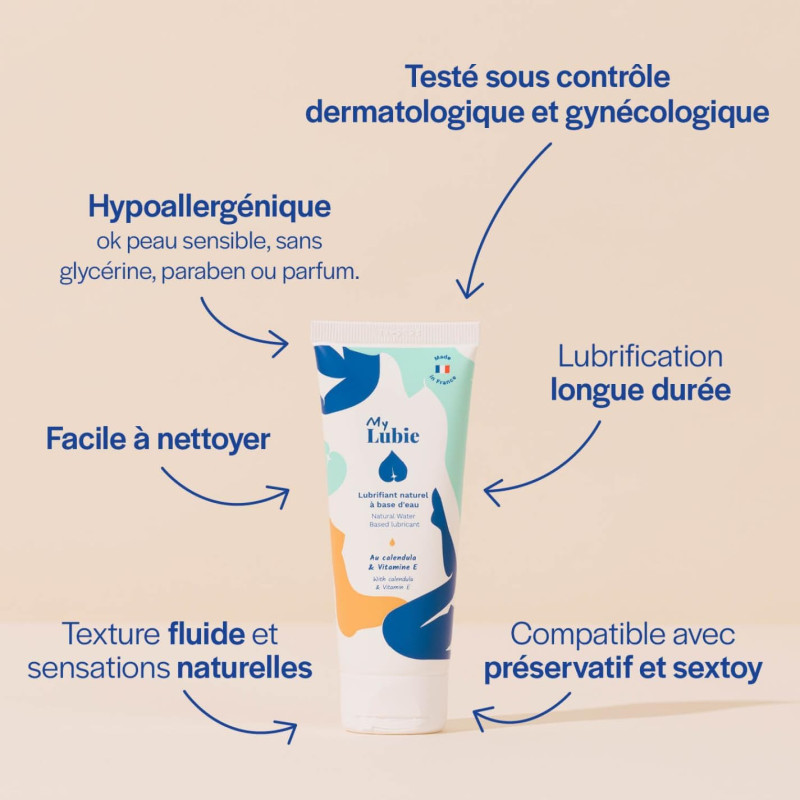 Essayez le lubrifiant à base d’eau avec My Lubie ! 100% naturel, ce lubrifiant remplit bien plus que sa fonction. Ses actifs hydratants et apaisants en font un soin utile contre les petites irritations (calendula, vitamine E).