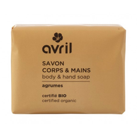 Le savon bio pour le corps et les mains Avril, aux notes acidulées d'agrumes.