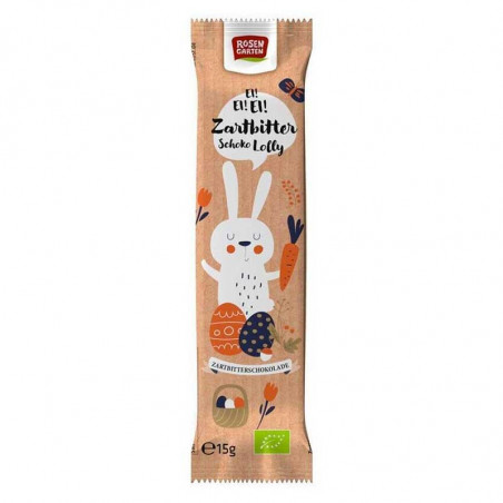 La sucette lapin au chocolat noir Rosengarten : un plaisir végétalien à grignoter pour les fêtes ! Son emballage coloré correspond parfaitement à l’ambiance de Pâques. La sucette peut autant servir pour une chasse aux œufs que pour réaliser une décoration festive.
