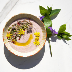 Découvrez le Tarama Vegan de L’Atelier V ! Une alternative végétale au tarama grec, sans oeuf de poisson et sans lait. Ce Tarama Vegan bluffant est réalisé à partir de 62% de haricot blanc bio d’origine France, d’algues dulse bretonnes et de jus de citron. Cette recette légère et salée accompagnera parfaitement vos apéritifs sur des blinis !