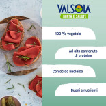 Apportez du caractère à vos apéros avec les tranches végétales sans bresaola Valsoia. 100% vegan, elles sont réalisées à partir de gluten de blé et de semoule de blé. Pour obtenir cette couleur rougeâtre, aucun colorant artificiel n’est utilisé, mais tout simplement de la betterave ! De l’ail et du poivre viennent réhausser le tout. Ces tranches végétales sans bresaola Valsoia sont idéales pour un apéritif végétalien ou en salade. Vous pouvez faire mariner les tranches dans du citron et de l’huile d’olive ou bien les déguster telles quelles.