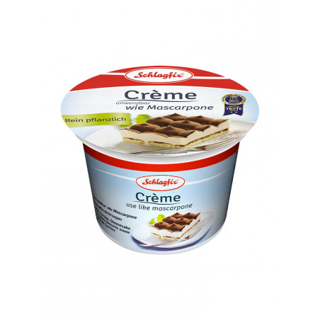 Vous avez envie d’un tiramisu vegan ? Optez pour la spécialité fraîche Schlagfix. Elle convient aux végétaliens, aux personnes allergiques au lait, aux œufs et au soja. Donnez-lui un petit coup de fouet au besoin, pour réaliser une verrine ou un tiramisu gourmand. Cette préparation n’est pas sucrée, elle s’intègre donc aussi bien dans une soupe ou un potage.