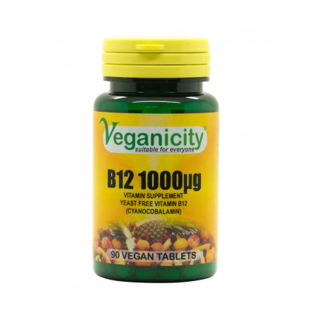 Découvrez la B12 1000μg de Veganicity. Un complément en vitamine b12 (cyanocobalamin) certifié vegan.